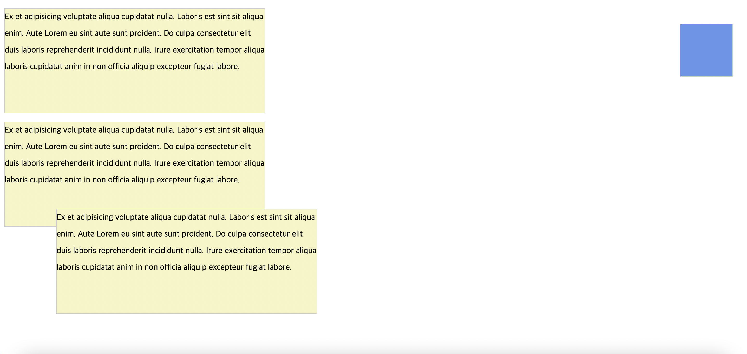화면을 움직여도 변화가 전혀 없는 파란박스 → 고정 포지셔닝