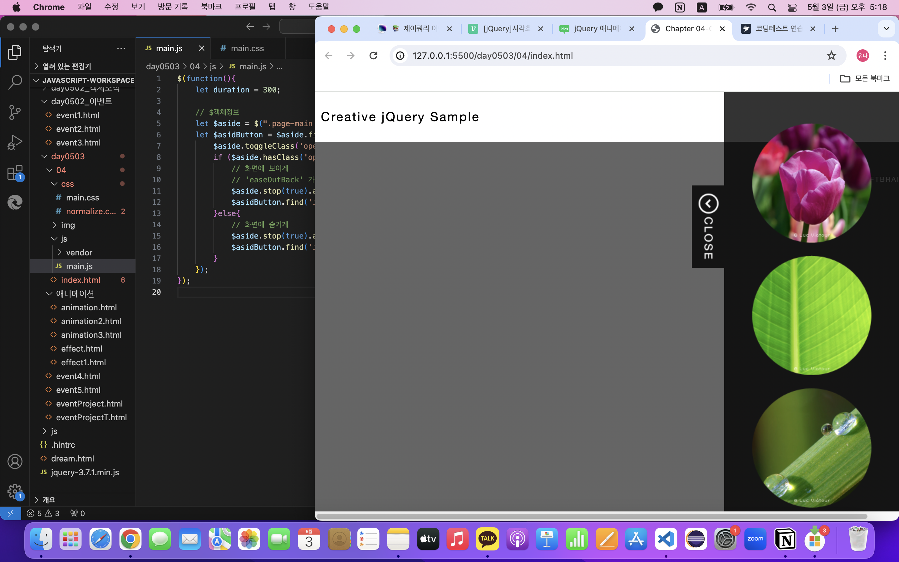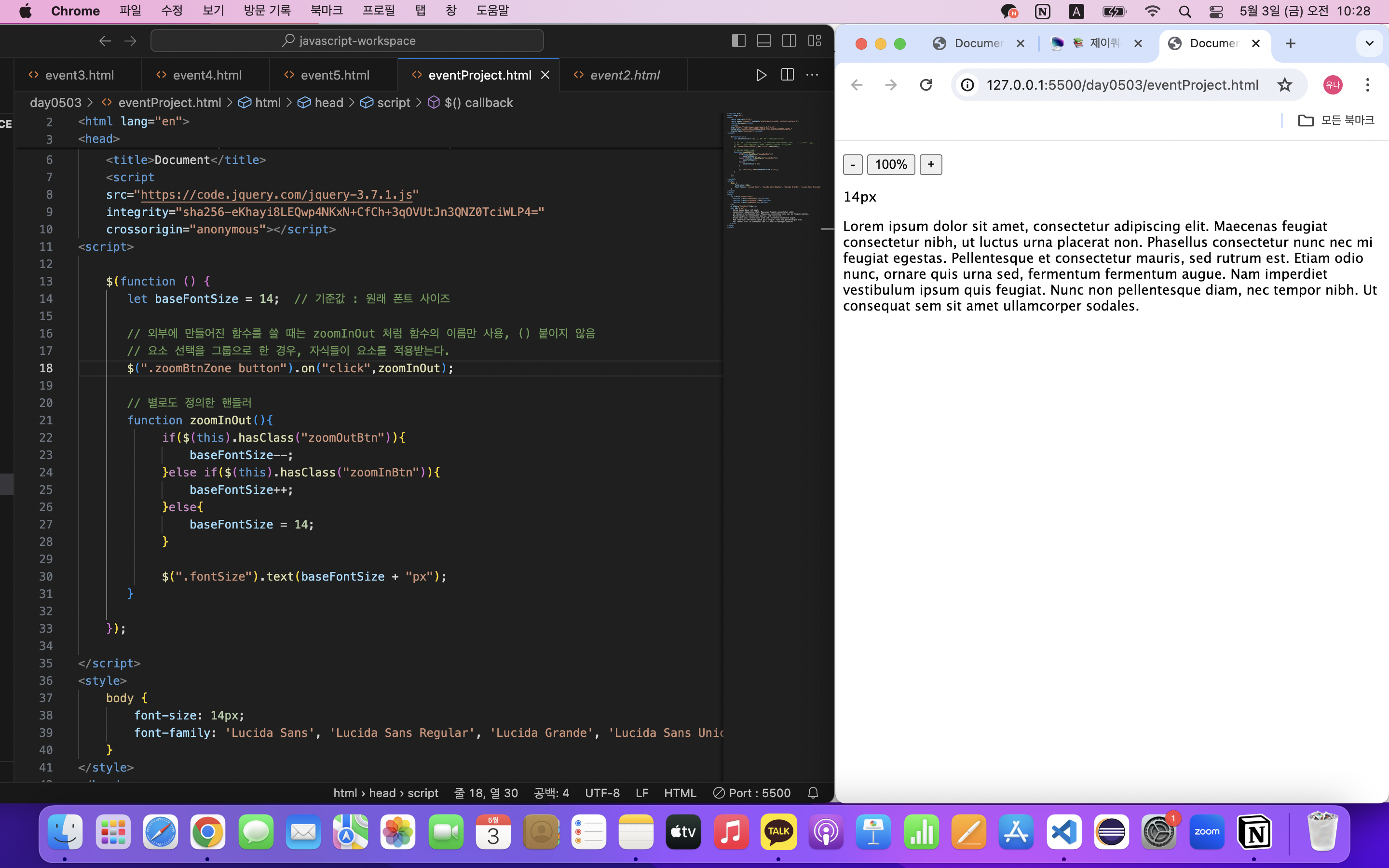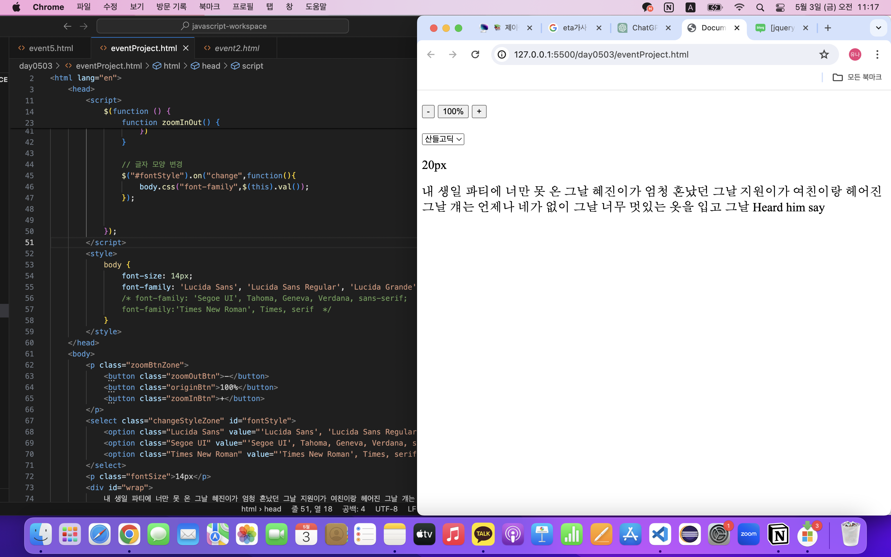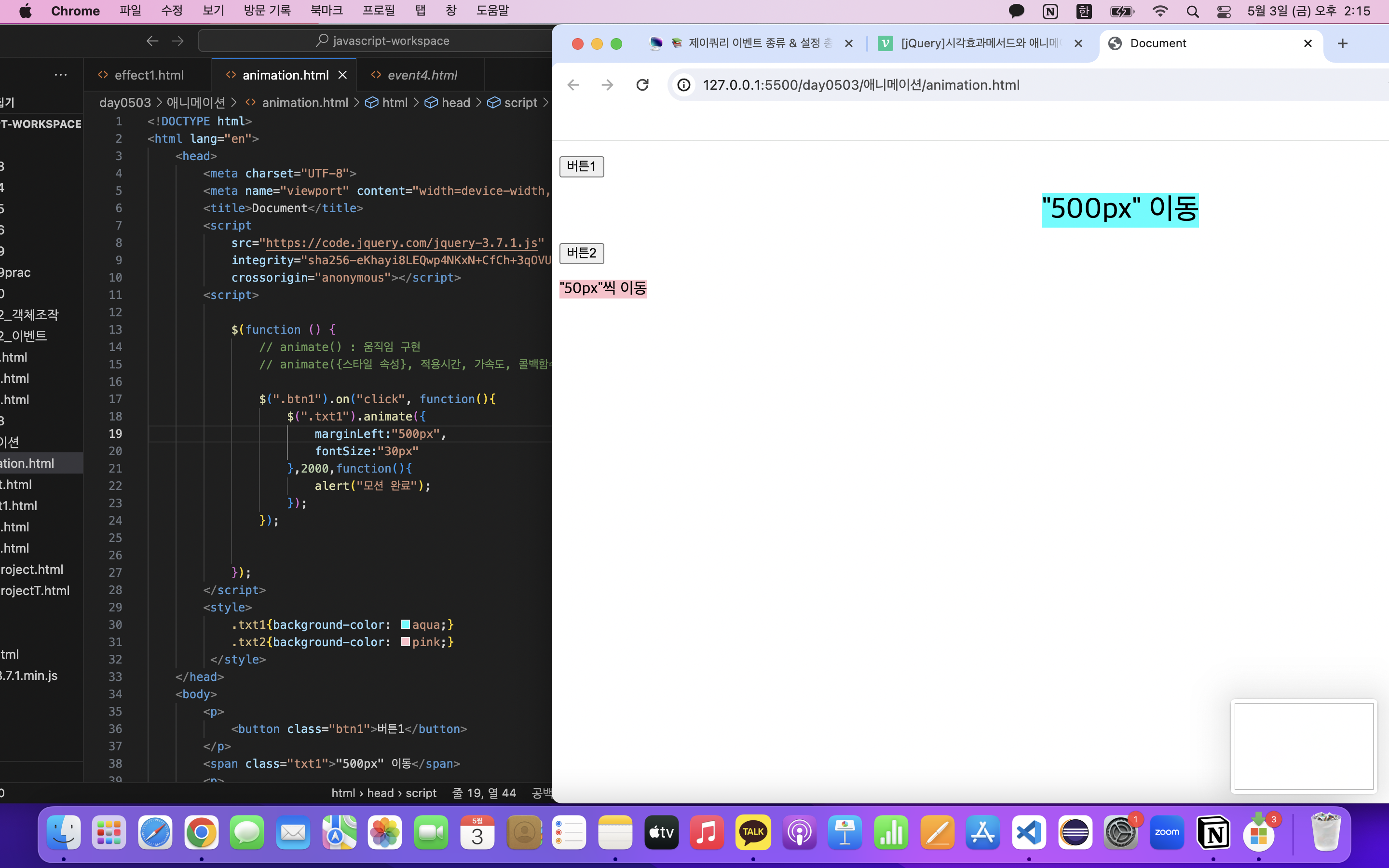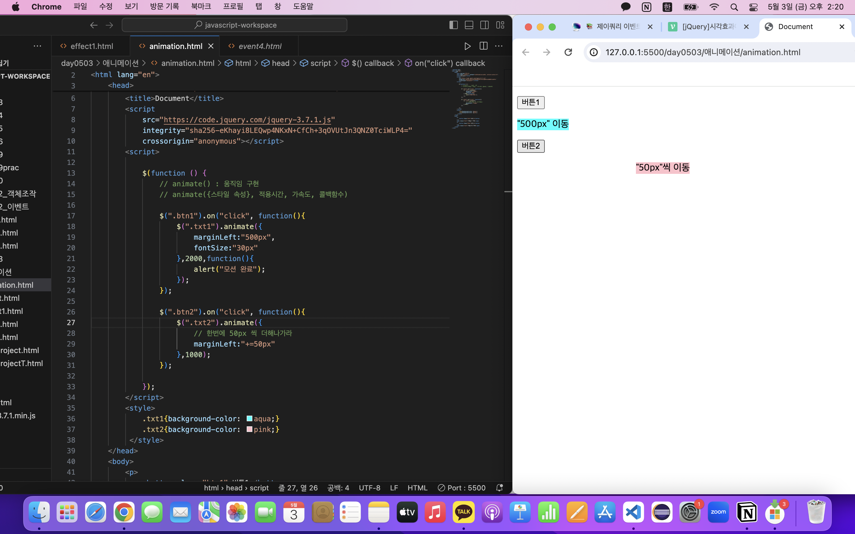 계속해서 제이쿼리의 이벤트에 대해 배운다.