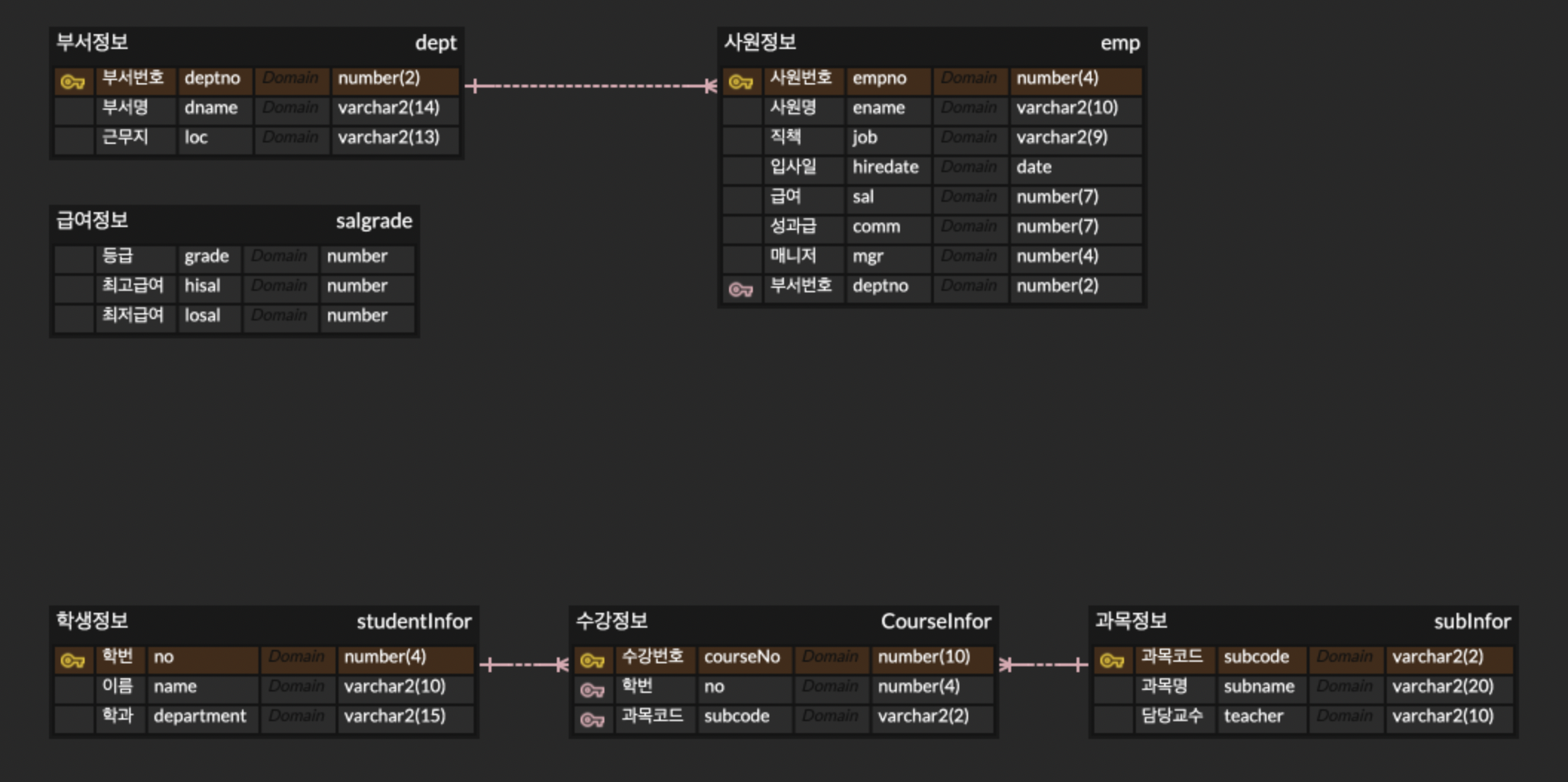erdcloud에서 만들어준 쿼리문을 이용해 sql developer로 데이터를 넣고 원하는 형식으로 조회해보았다.