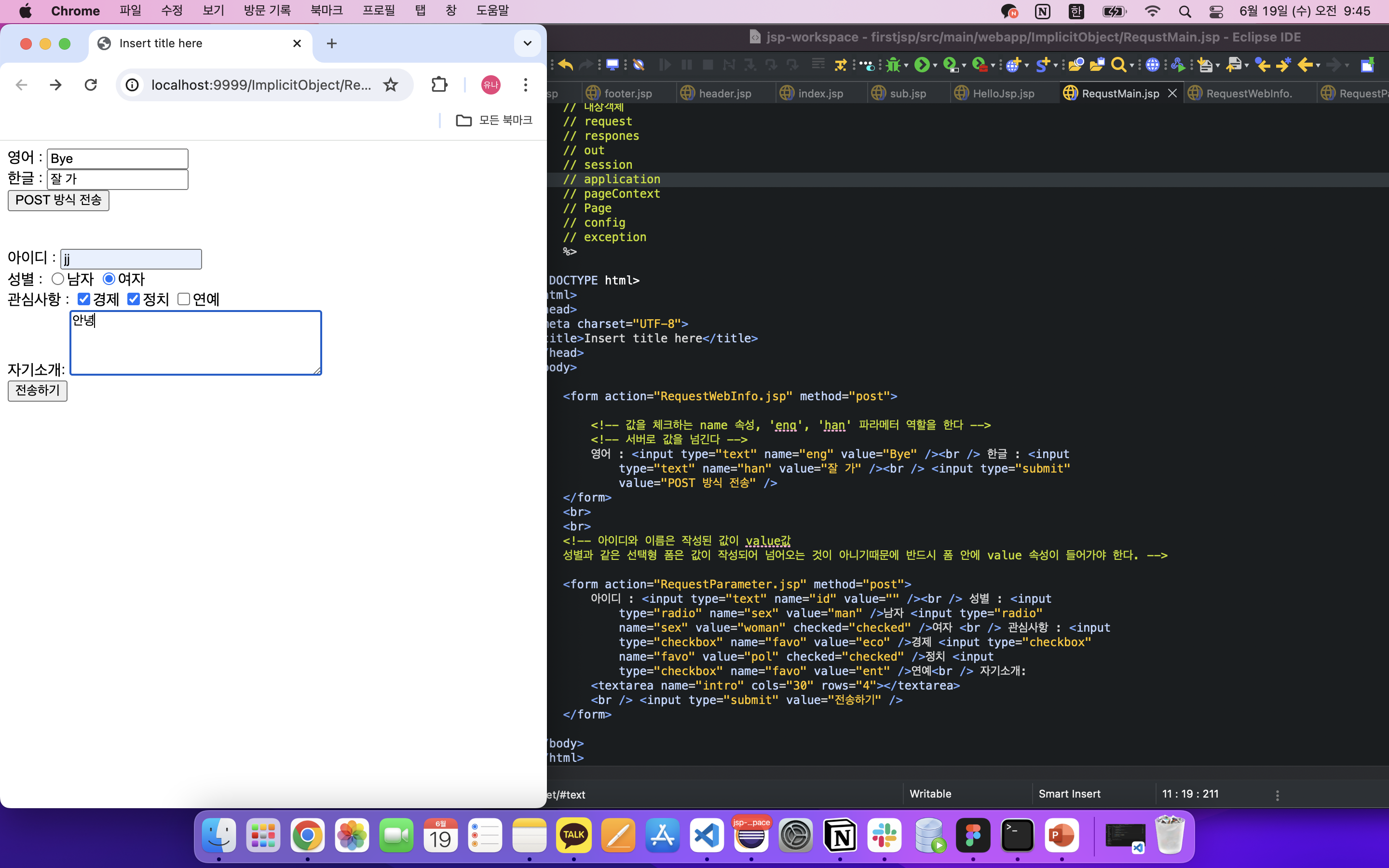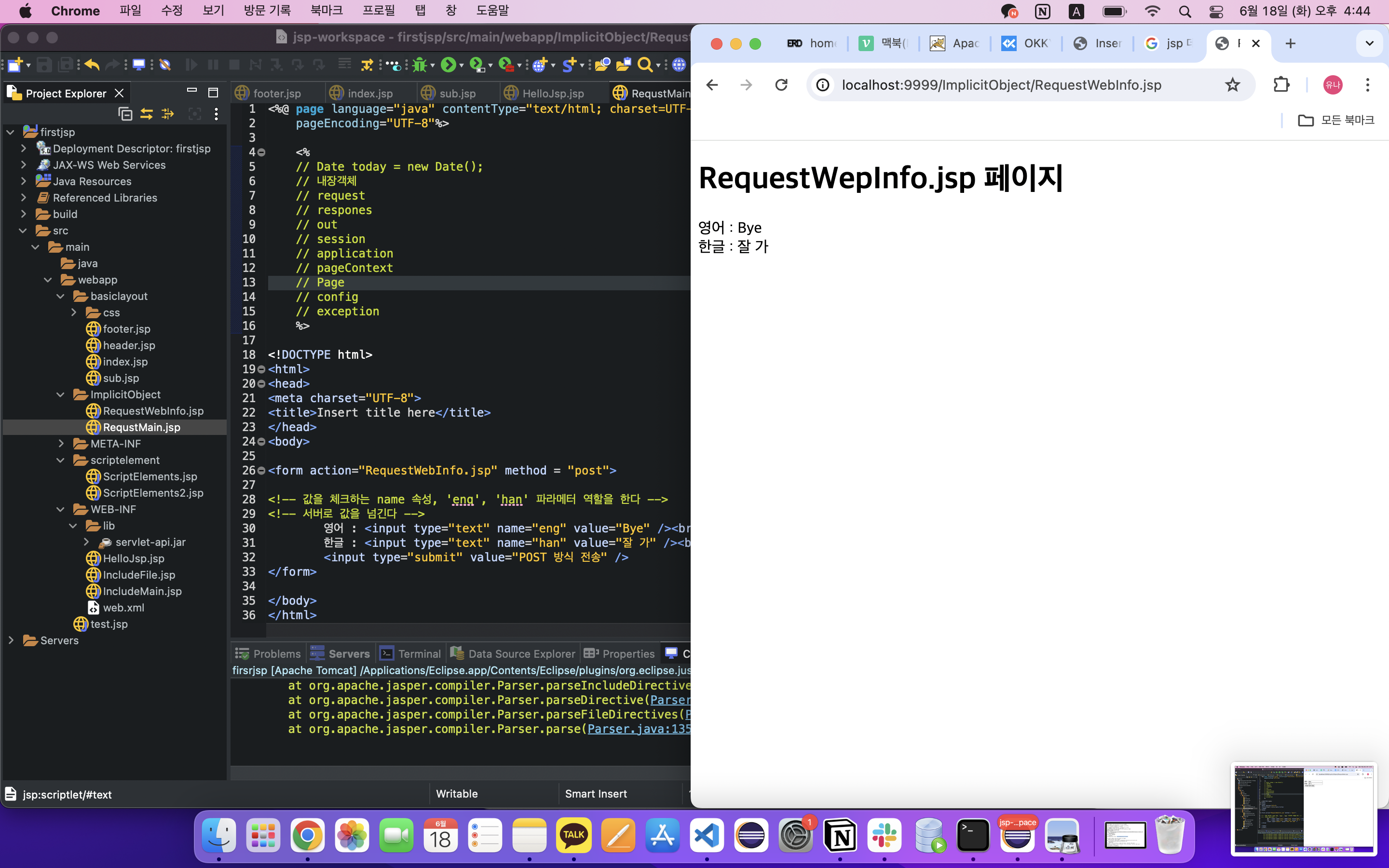 http://localhost:9999/ImplicitObject/RequestWebInfo.jsp?eng=Hello&han=안녕