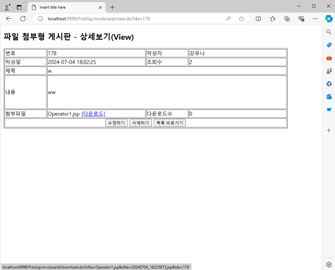 게시판 상세보기 화면과 파일 다운로드 기능 구현