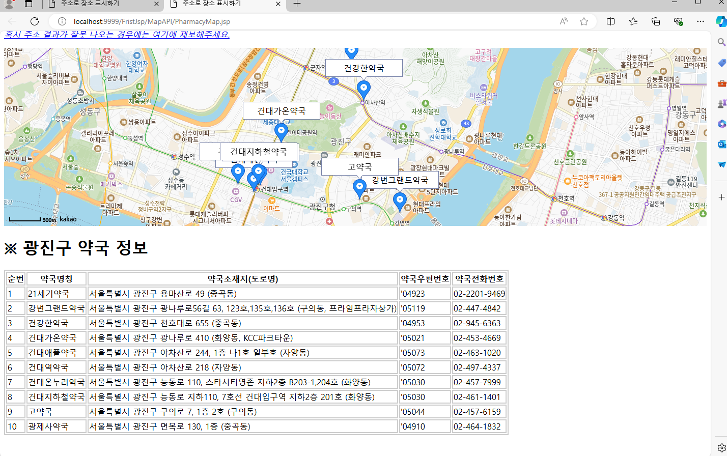 혹시 주소 결과가 잘못 나오는 경우에는 여기에 제보해주세요.