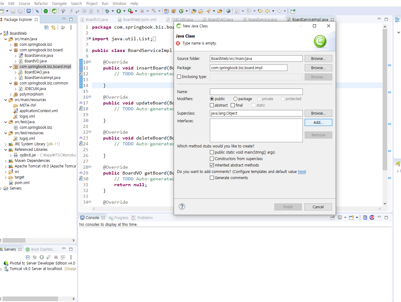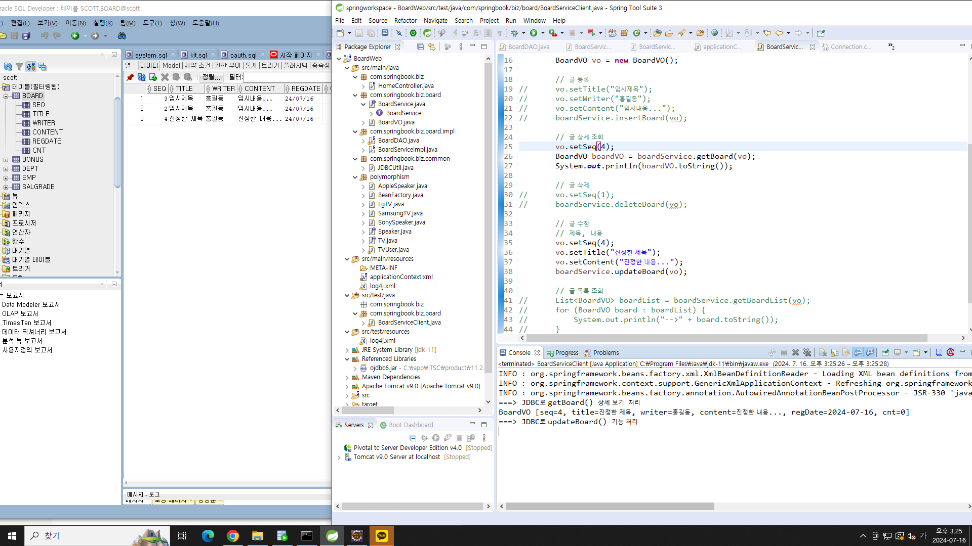 여기까지 했을 때 BoardServiceClient.java를 실행하면 DB로 데이터가 넘어가야 한다.