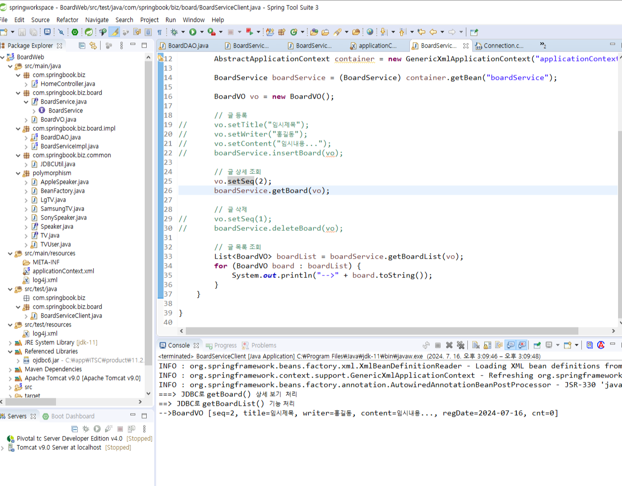 BoardService boardService = (BoardService) container.getBean("boardService");