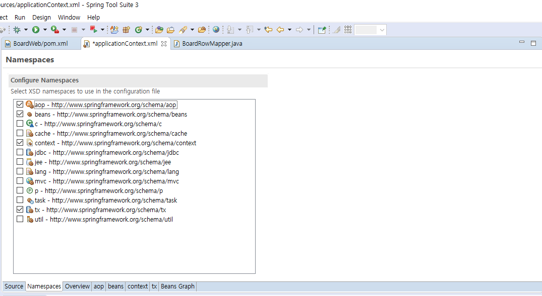 BoardServiceImpl 에서 BoardDAOSpring 의존 주입