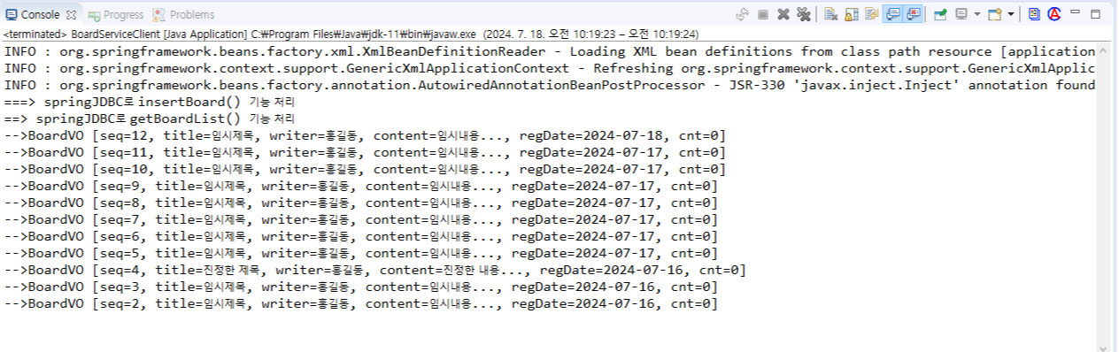 System.out.println("==> springJDBC로 getBoardList() 기능 처리");